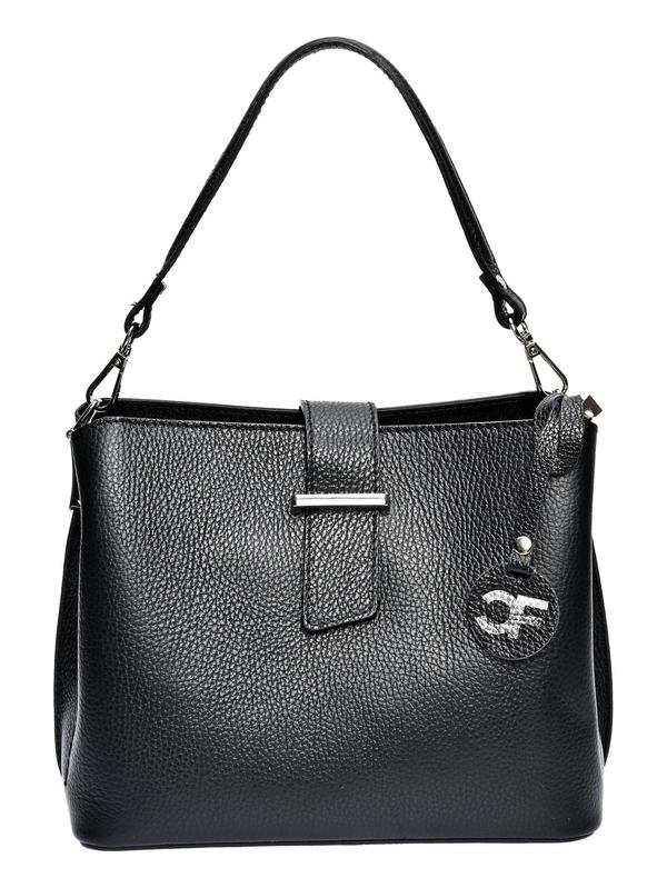 Handbag 100% cow leather Top zip closure Front magnetic closure Internal zip compartment Dimensions : 21x26x13 cm Handle: 44 cm Shoulder strap: 120 cm adjustable