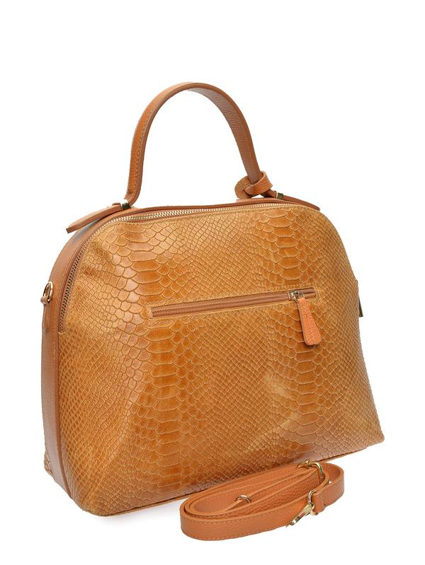 Handbag 100% cow leather Top zip closure Internal zip pocket Backside zip pocket Dimensions : 27x35x12 cm Handle: 30 cm Shoulder strap: 120 cm