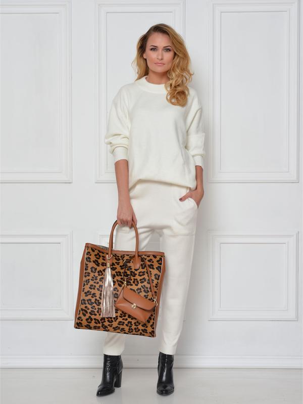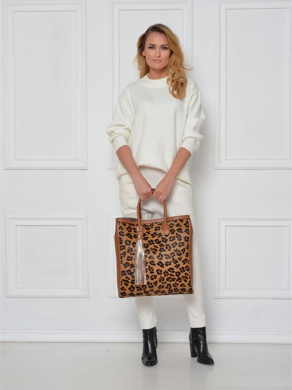 Composition: Cow leather with leopard print goat hair