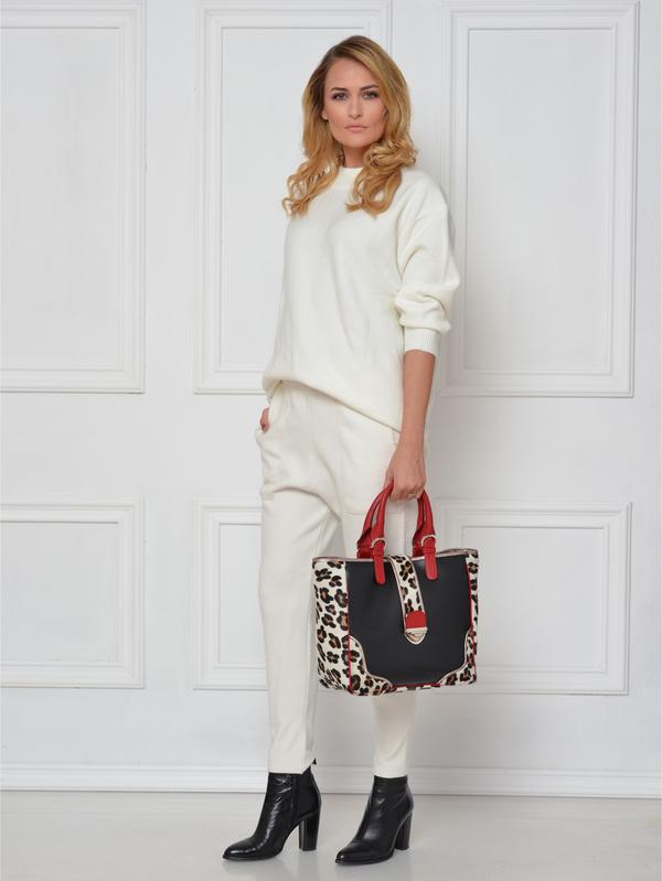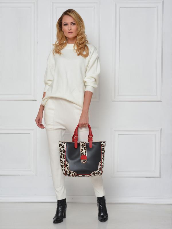 Composition: Cow leather with leopard print goat hair