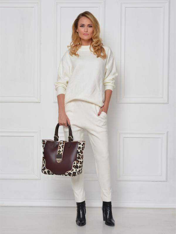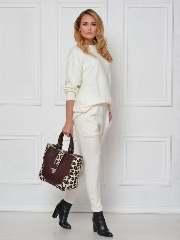 Composition: Cow leather with leopard print goat hair